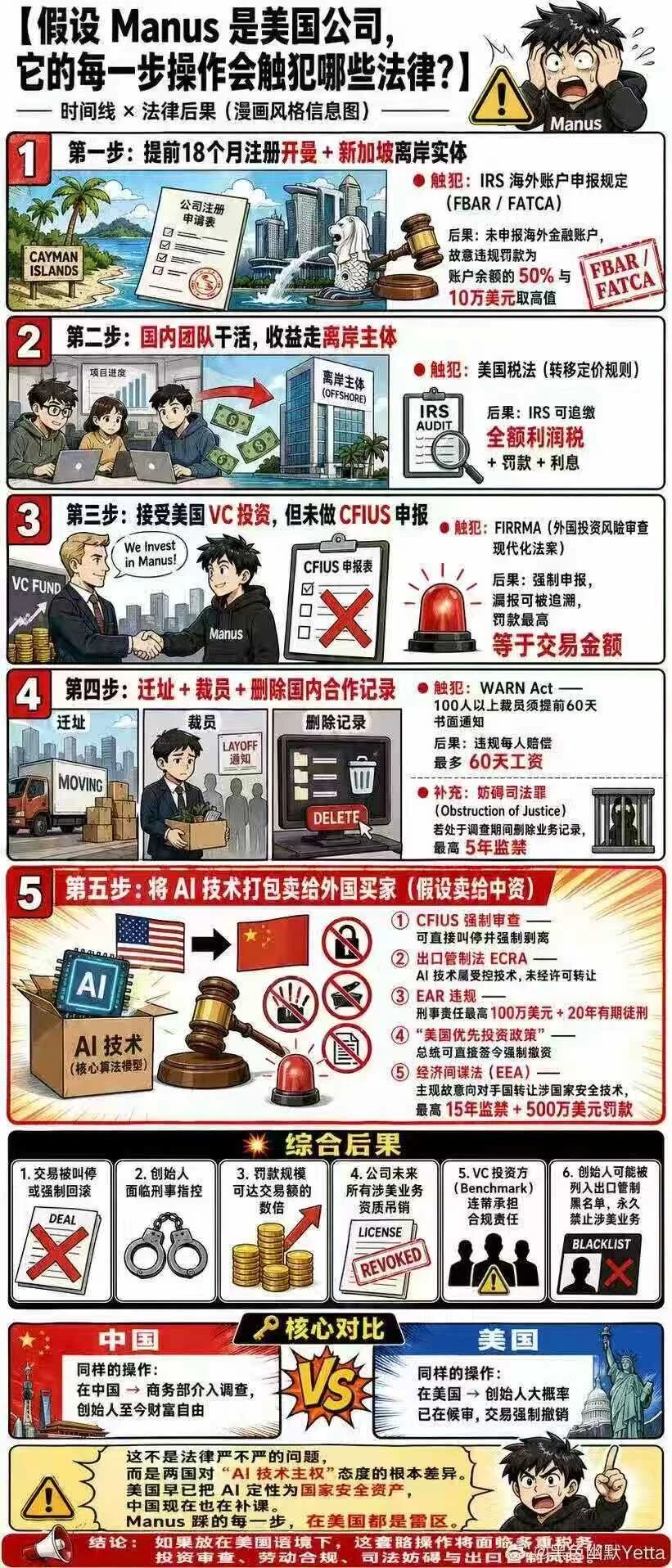Manus求锤得锤,这不是谁欺负谁,是所有投机取巧的交易到头来都会有的结局——你试图钻空子、走捷径,但终究挡不住终点线上举起的那张红牌。前段时间「幽灵外卖」被罚款、前些年中概股被集体整改、以及几家巨头因“二选一”被罚没巨款,本质逻辑都是一样的。【P3】