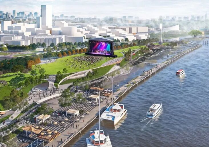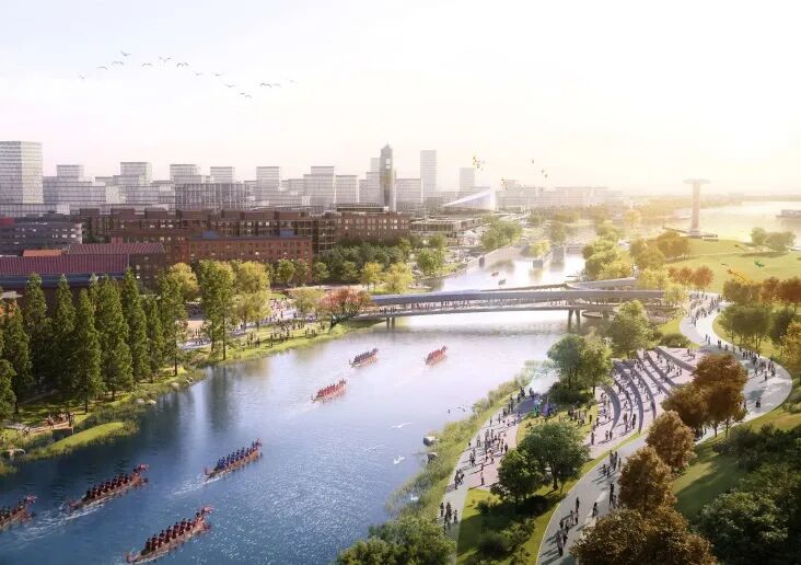 根据规划,复兴岛北部现有防汛墙将被拆除改造,让岛头区域逐步恢复滩涂与江心洲的自然地貌,为鸟类提供栖息地。沿岸将设置缓坡、景观台阶和亲水平台,既方便市民亲近水岸,又兼顾防洪功能。岛北中部的露天广场,为未来举办文化娱乐活动预留空间。此外,一座高星级酒店也将落户岛北,不仅填补复兴岛文旅配套的空白,还将成为全岛的制高点,塑造区域天际线。